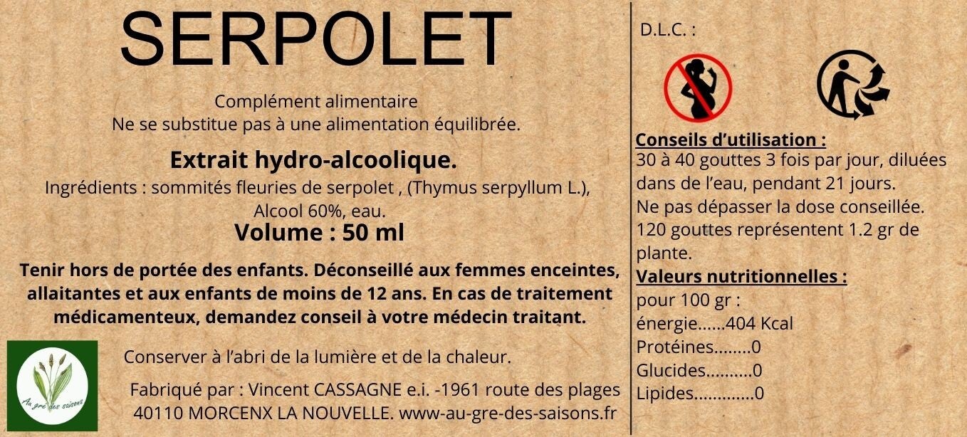 Conseils d’utilisation :20 gouttes 2 à 3 fois par jour, diluées dans de l’eau, pendant 21 jours. 60 gouttes représente 0,6 g de plante