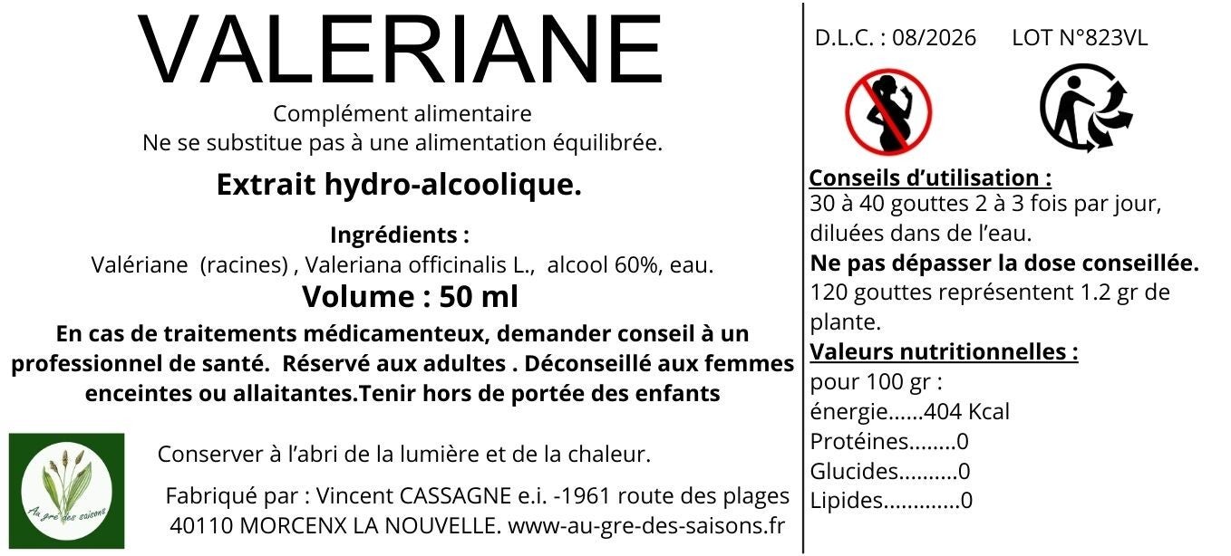 Conseild'utilisation:30 à 40 gouttes 2 fois avant le coucher, diluées dans de l’eau.